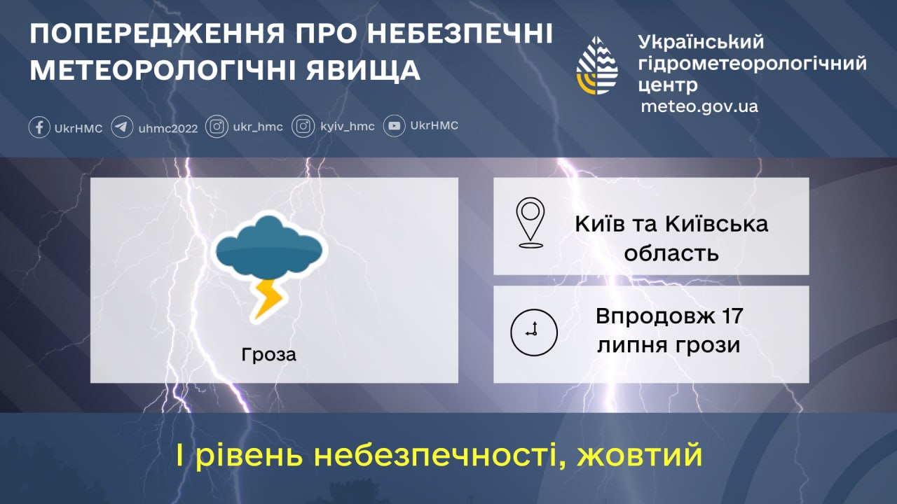 📌Прогноз погоди на добу 17 липня по території Київщини та м.Києва + ‼️Попередження про небезпечні метеорологічні явища по території Київщини та м. Києва