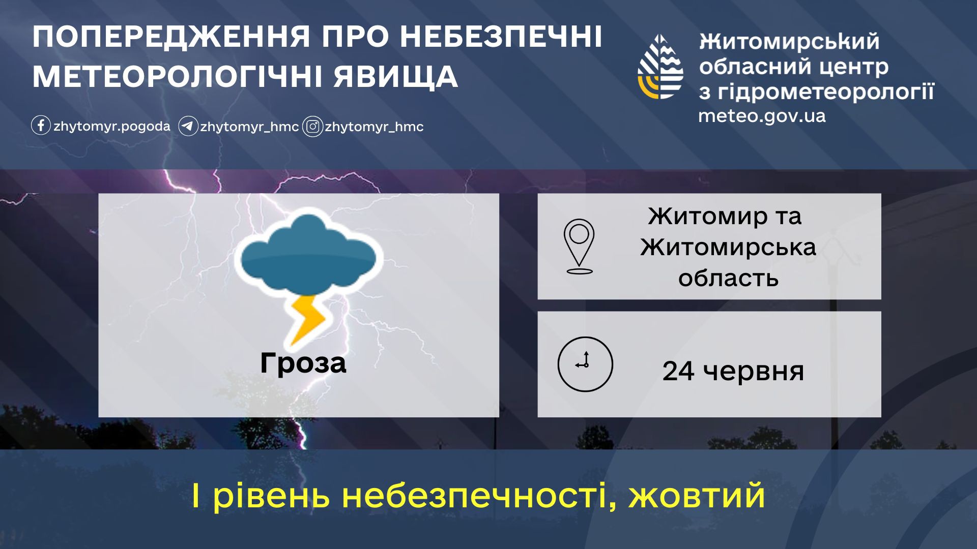 Прогноз погоди в Житомирі на 24 червня: грози та вітер