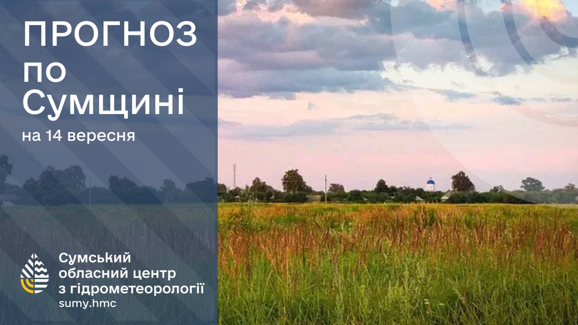 📌Прогноз погоди на 14 вересня для Сумської області. Синоптична ситуація зумовлена впливом північного антициклону, що забезпечить стабільну погоду без істотних опадів. Очікується мінлива хмарність, без дощу. Вітер буде південно-східного напрямку зі швидкістю 5-10 м/с. Температурні показники в нічний час по області коливатимуться в межах +6°..+11°, тоді як вдень стовпчики термометрів піднімуться до +19°..+24°.
