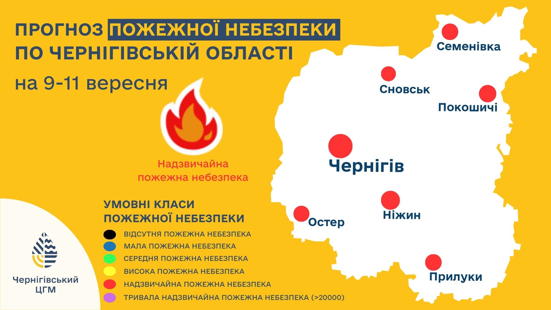 Прогноз пожежної небезпеки: 5 клас до 9-11 вересня