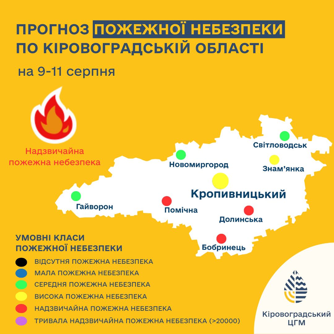 9-10 серпня в південно-західних і південно-східних районах області утримається надзвичайна (5 класу), в центральних та південних районах – висока (4 класу) пожежна небезпека.