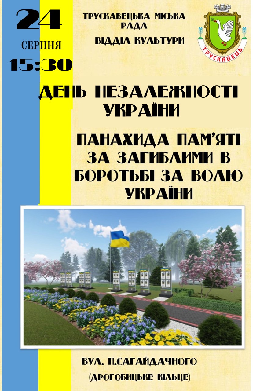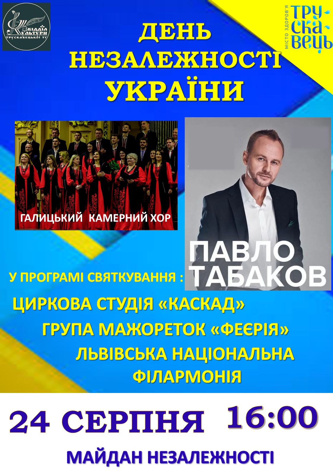 Україна готується відзначити одні з найважливіших національних свят: День Державного Прапора 23 серпня та День Незалежності України 24 серпня. Трускавецька громада долучається до цих урочистостей, пропонуючи насичену програму заходів, що охоплюють культурні, спортивні та патріотичні події. Запрошуємо всіх мешканців громади та гостей міста взяти участь у святкуванні.