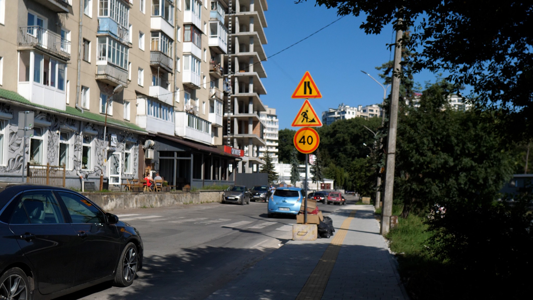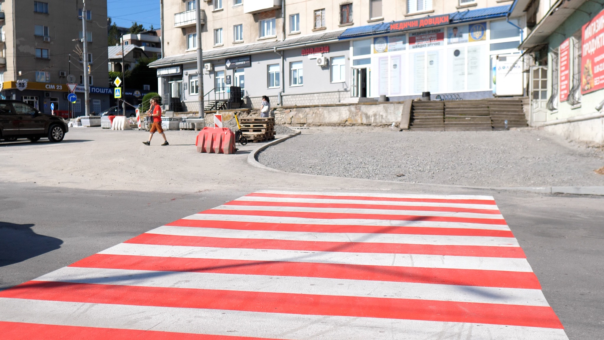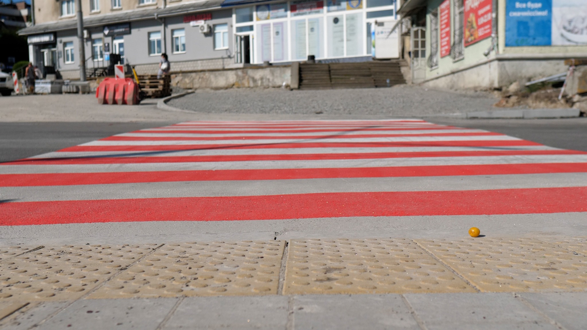 🛠 Уже зроблено частину тротуару, перенесено пішохідний перехід, понижено бордюри та встановлено тактильну плитку.