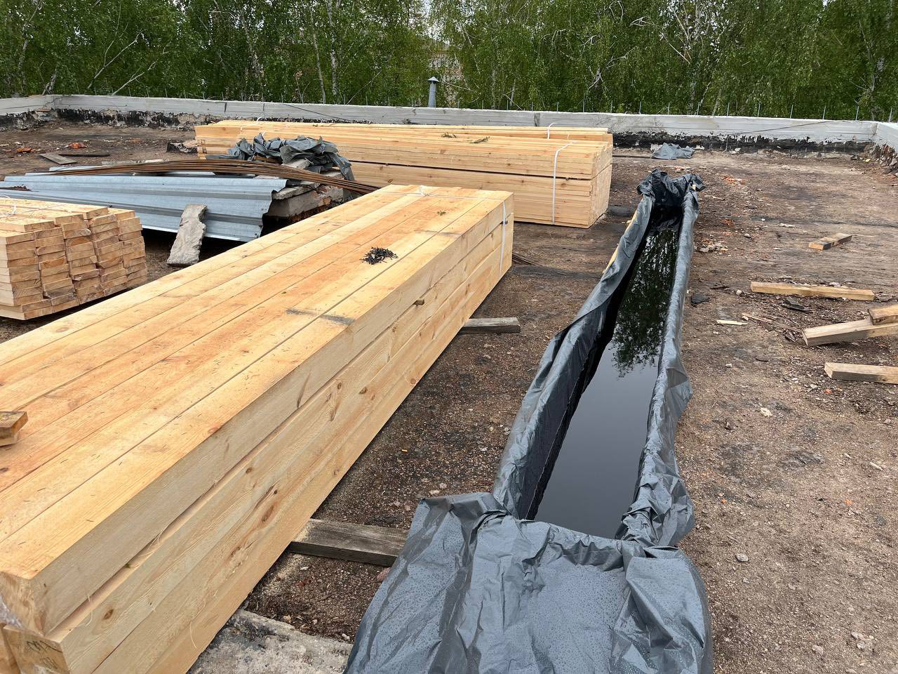 На даний момент, будівельна бригада завершила демонтаж застарілих конструкцій, провела ретельну підготовку поверхні та залила армуючий пояс. Сьогодні було отримано партію деревини, яка буде використана для покрівлі. Наразі деревина проходить спеціальну обробку для забезпечення її захисту від вологи та шкідників.