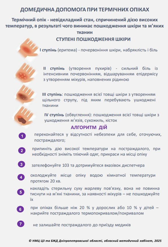 Домедична допомога при опіках та засоби захисту: Пам’ятки