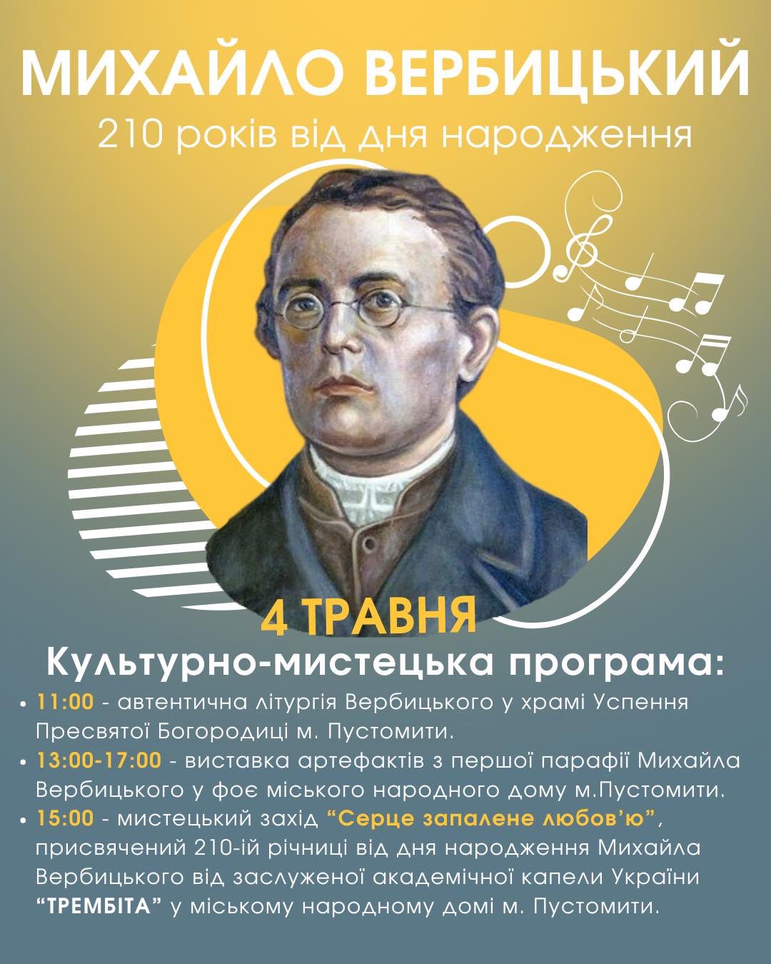 📌Михайло Вербицький 210 років від дня народження і з цієї нагоди запрошуємо Вас на особливу культурно-мистецьку програму: