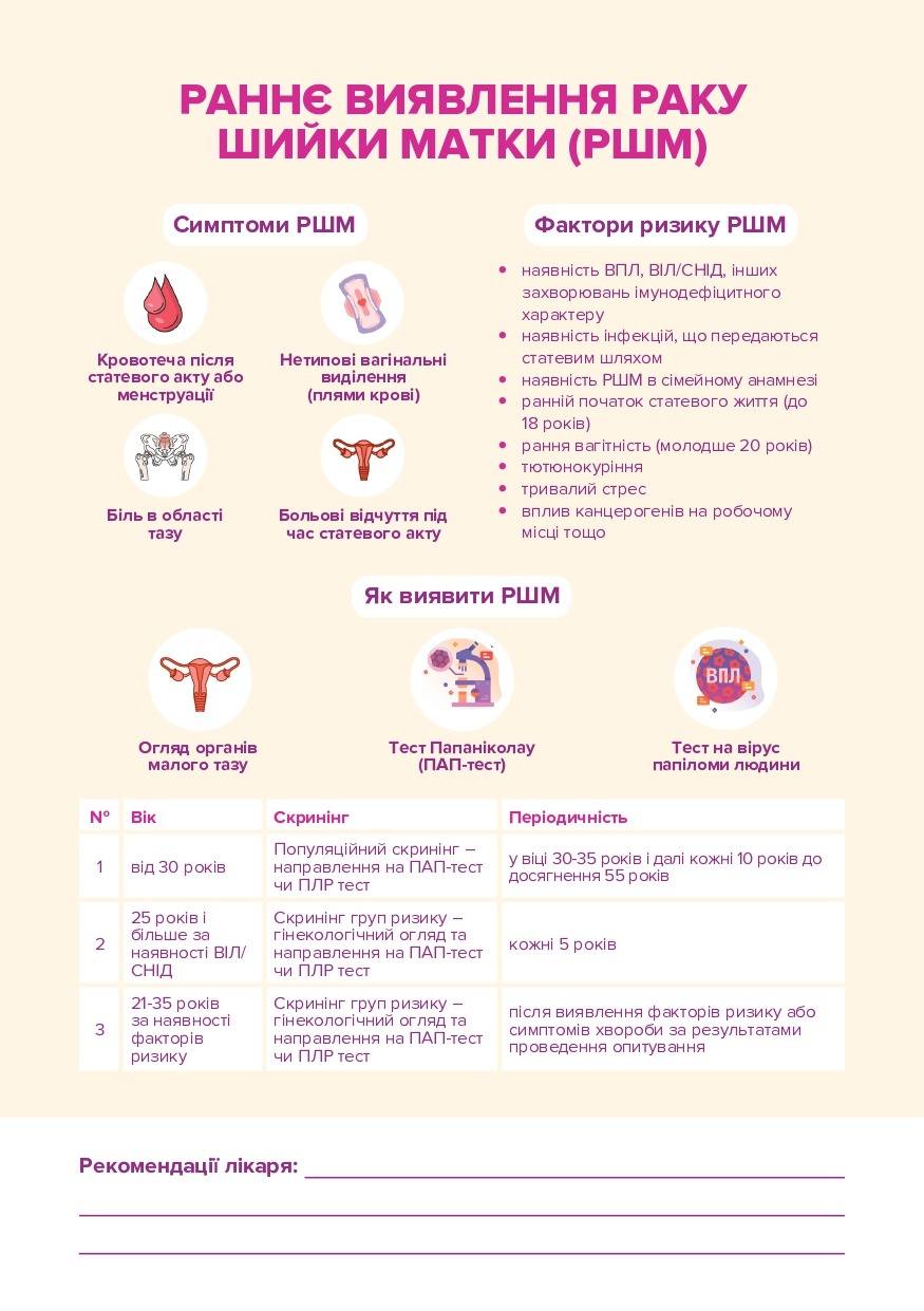 Прості кроки для виявлення раку молочної залози (РМЗ), раку шийки матки (РШМ) та