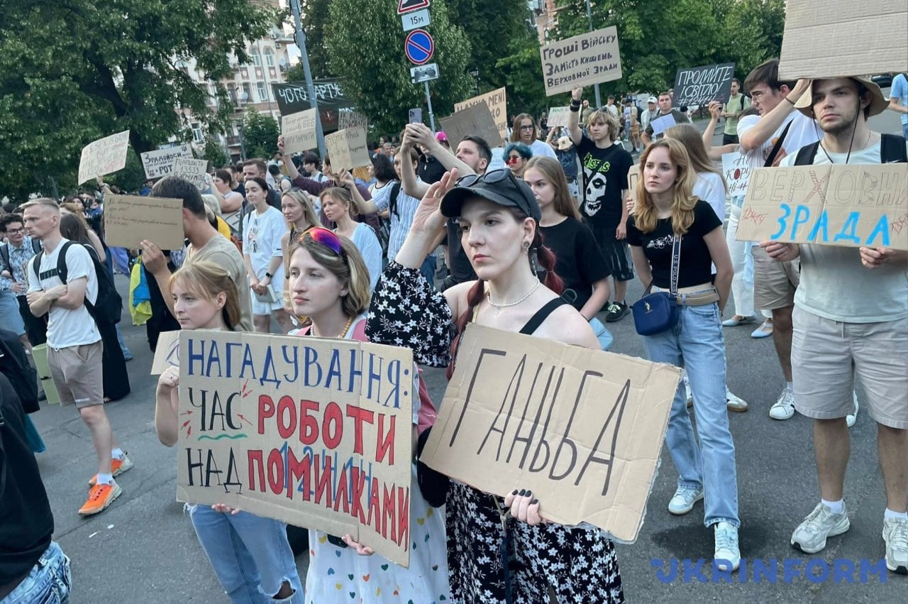 Зібралося близько 200 небайдужих громадян, які тримали плакати з гаслами та вимагали скасування або перегляду щойно ухваленого парламентом і підписаного президентом закону. Атмосфера була сповненою рішучості відстоювати демократичні цінності.