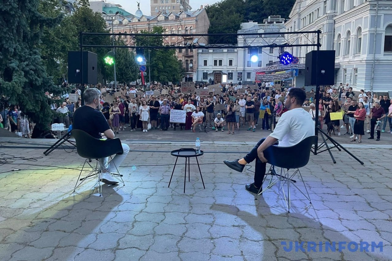 На місці події було облаштовано імпровізовану сцену, де кожен охочий міг висловити свою думку у відкритій дискусії, що сприяло обміну поглядами та консолідації протестувальників.