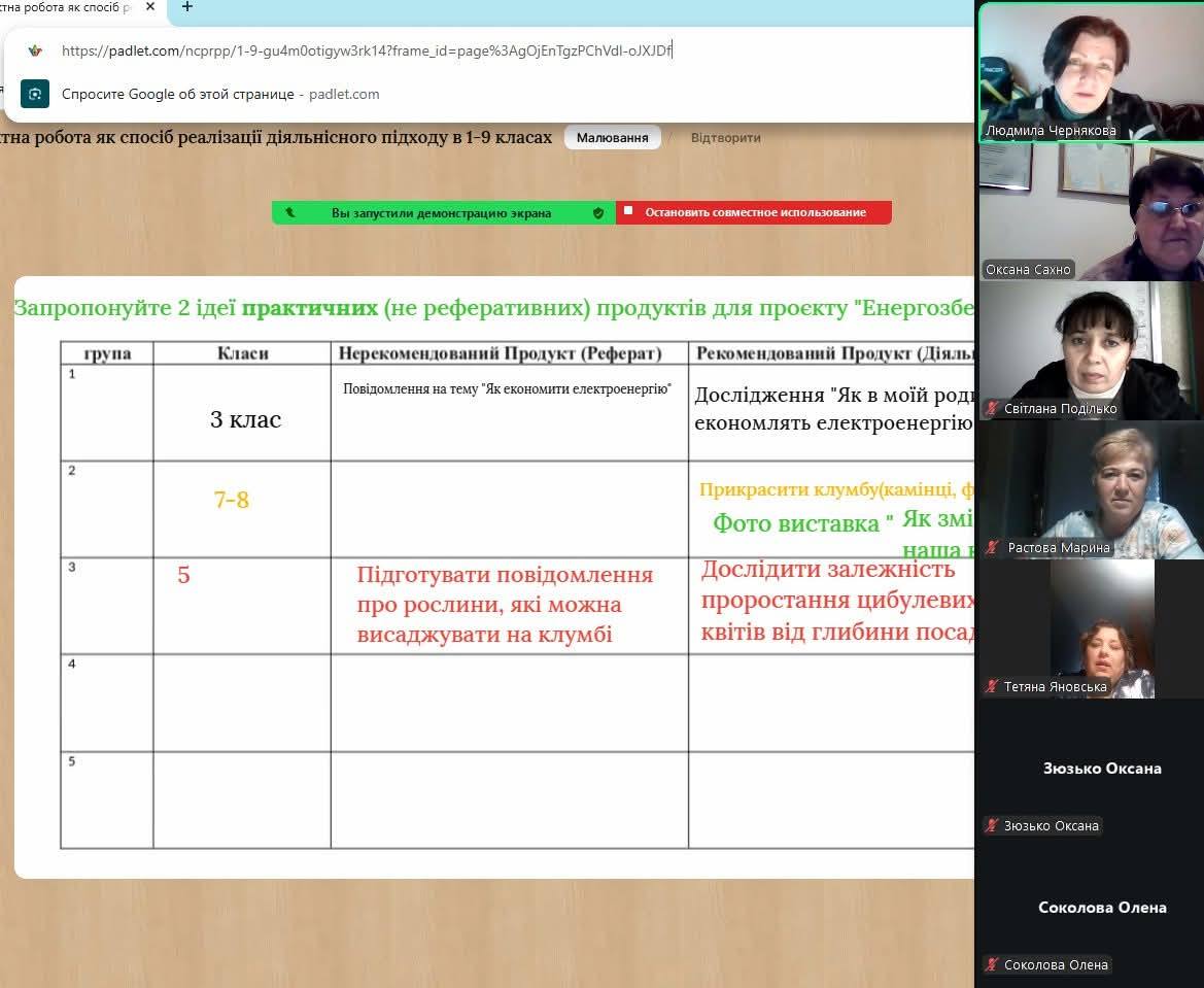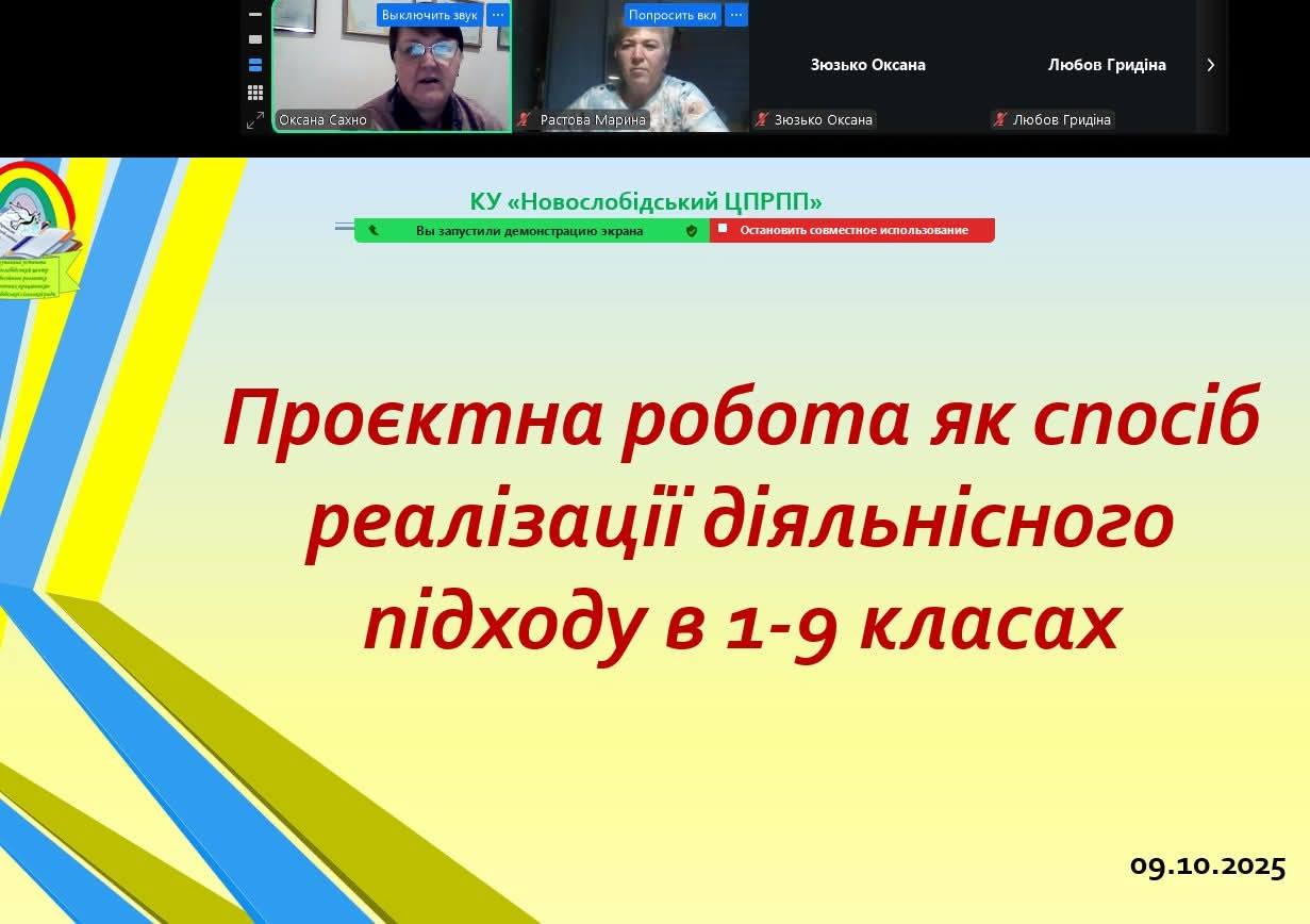 09.10.2025, згідно з планом роботи КУ «Новослобідський ЦПРПП», відбулася онлайн-зустріч на тему «Проєктна робота як спосіб реалізації діяльнісного підходу в 1-9 класах». У заході взяли участь 10 педагогів з освітніх закладів Новослобідської Територіальної Громади. Ця зустріч була присвячена не просто проєктам, а розвитку агентності учнів – їхньої здатності впливати на власне навчання та навколишній світ, а також акценту на дію.