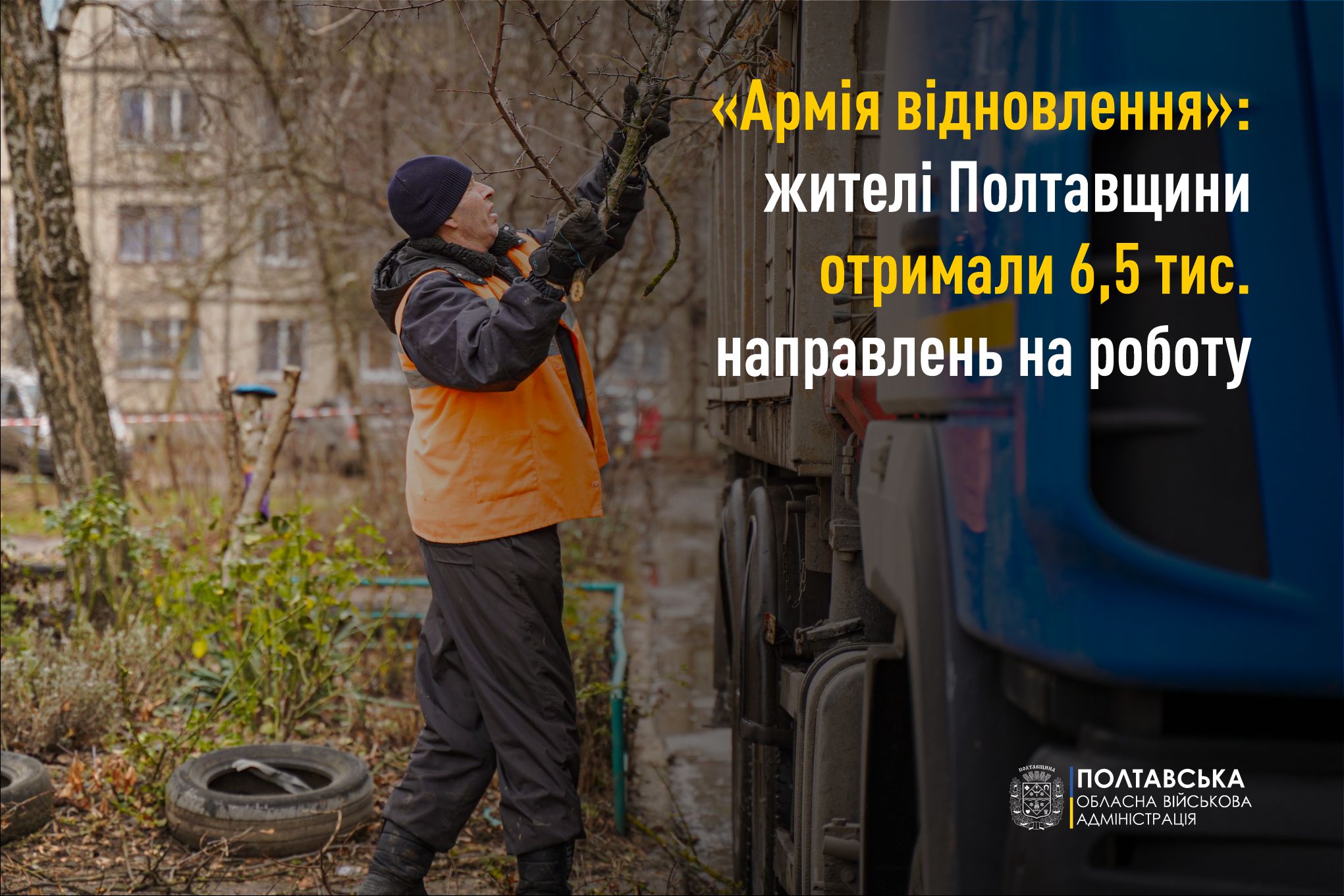 📊 Полтавський обласний центр зайнятості за останні пів року видав близько 6,5 тисяч направлень у рамках державної ініціативи «Армія відновлення». Це ставить Полтавщину на друге місце серед усіх регіонів України за цим показником. Ця програма надає чудову нагоду для людей, які тимчасово втратили роботу, отримати оплачувану зайнятість та зробити внесок у відбудову країни.