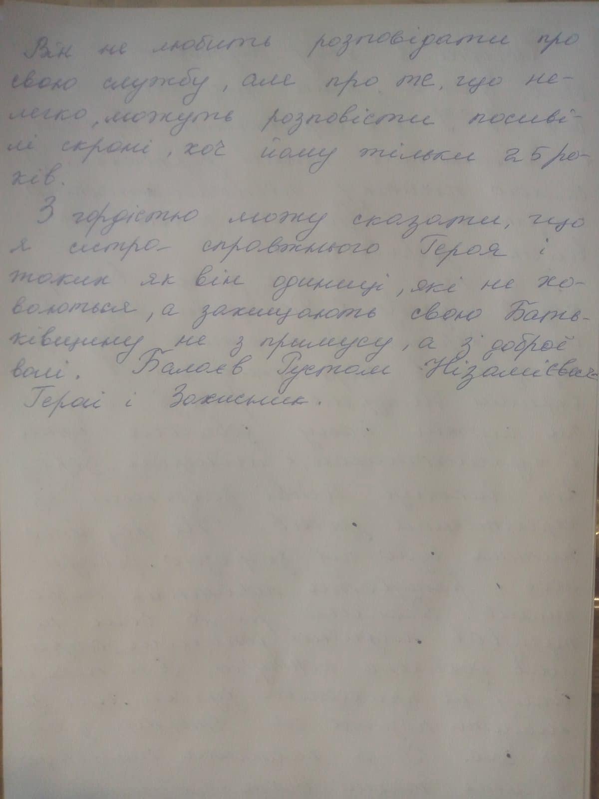 Сім’я Балаєвих ділиться своєю любов’ю та підтримкою до сина (брата) Рустама, справжнього героя. Кожен день вони думають про нього, моляться за його безпеку і з нетерпінням чекають на його повернення. Він є уособленням мужності та самовідданості, людиною, за яку болить серце і яку безмежно люблять. Їхній брат сьогодні там, де найважче, де вирішується доля України, і вони пишаються його подвигом.