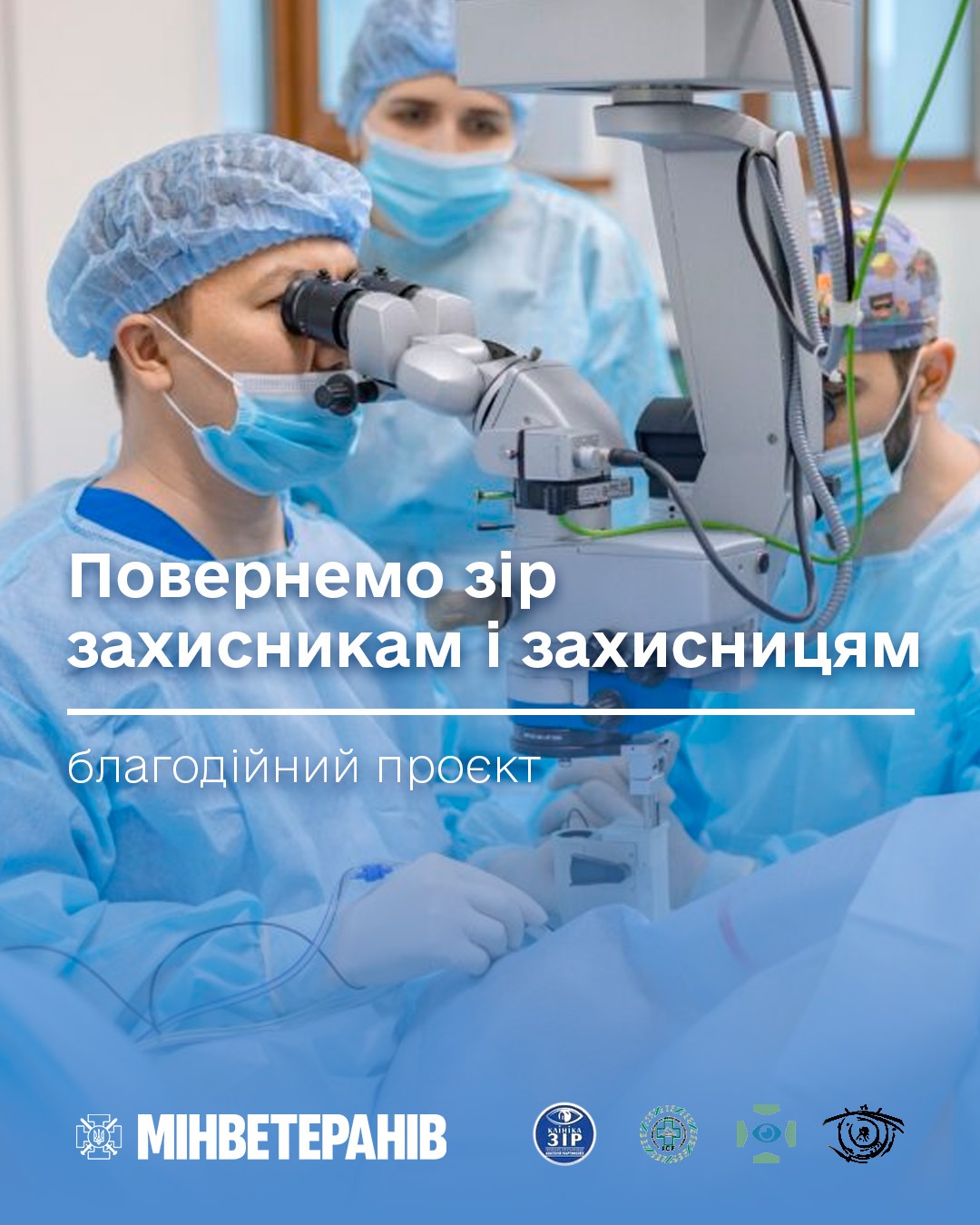 Проєкт «Повернемо зір Захисникам та Захисницям України» реалізується Міністерством у справах ветеранів України, МБФ «Сприяння розвитку медицини» ICF “Contribution to Medicine Development” та клініками Мікрохірургія ока Василя Шевчика, Клініка Зір і “Гіппократ”.