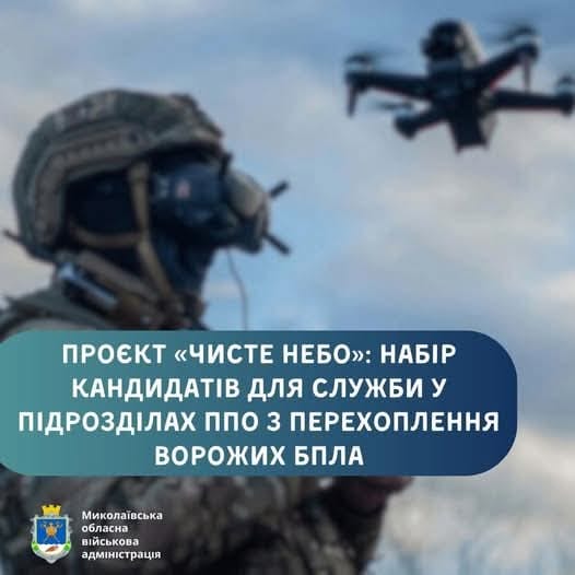 🛡Проєкт «Чисте небо»: набір кандидатів для служби у підрозділах ППО з перехоплення ворожих БпЛА