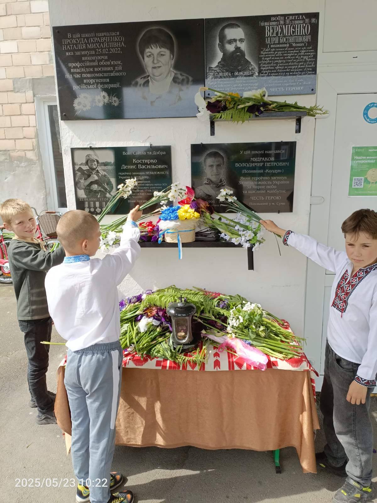 🙏 З нагоди Дня Героїв вшановано пам’ять полеглих земляків. Відбулося покладання квітів до куточку пам’яті в КЗ «Центр культури та дозвілля». Учні Миколаївської школи та вихованці ЗДО «Чебурашка» вшанували пам’ять Андрія Веремієнка, Наталії Прокуди, Дениса Костирка, Володимира Мудракова, поклавши квіти до меморіальних дошок.