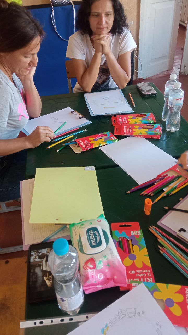 Паралельно з дитячими заняттями, для батьків був організований спеціальний арттерапевтичний захід, спрямований на елементи самопізнання. Учасники працювали над створенням власних «автопортретів». Ця вправа допомогла їм глибше зануритися у власний внутрішній світ, краще зрозуміти себе, усвідомити свої сильні сторони, ресурси та поточний емоційний стан. Арт-терапія для дорослих стала можливістю для емоційного розвантаження та саморефлексії.