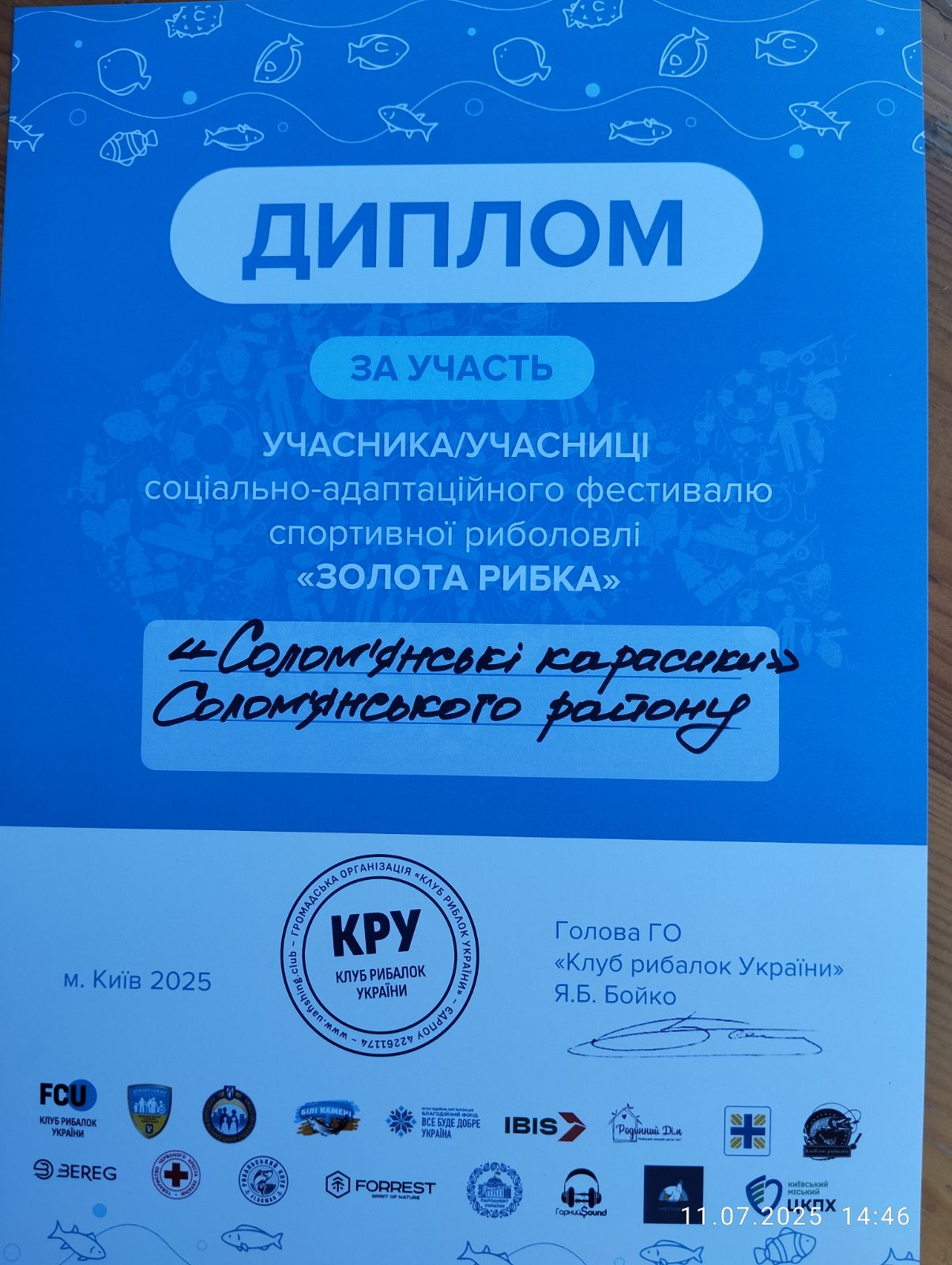😉 У Києві відбувся фестиваль спортивної риболовлі «Золота рибка», який зібрав п’ять сімей – отримувачів послуг Солом’янського районного центру соціальних служб. Захід пройшов 11 липня у Центрі сімейної риболовлі «Білі Камені».