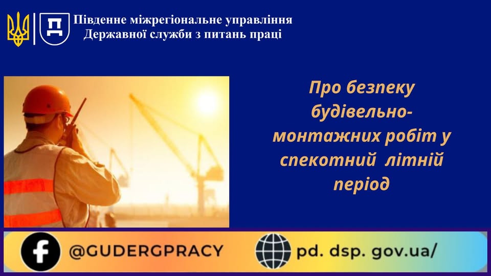 З метою попередження випадків руйнування вантажопідіймальних кранів, задля створення та дотримання безпечних і нешкідливих умов праці під час виконання робіт на висоті в несприятливих погодних умовах, особливо у Одеському регіоні, де активно продовжують вести будівництво та на виконання вимог пункту 1.16. «Правил охорони праці під час виконання робіт на висоті», НПАОП 0.00-1.15-07, Південне міжрегіональне управління Державної служби з питань праці попереджає керівників будівельно–монтажних підприємств, які експлуатують баштові крани, та виконують роботи на висоті.