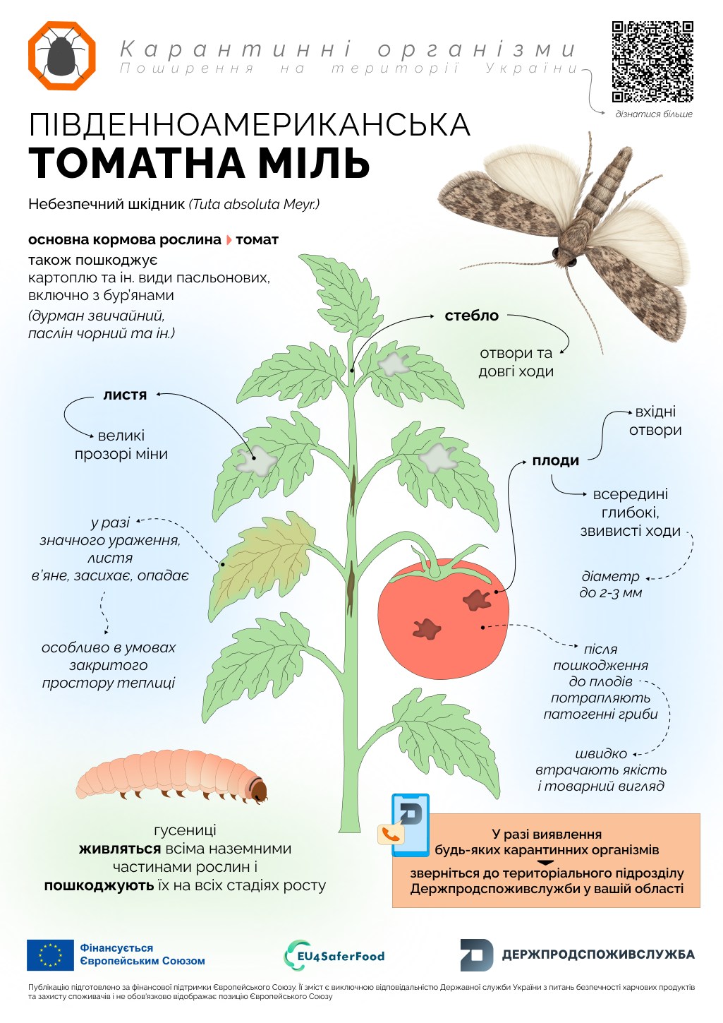 Спільно з європейським проєктом EU4SaferFood розробили інформаційні матеріали щодо ознак пошкодження, заходів боротьби та шляхів поширення томатної молі.