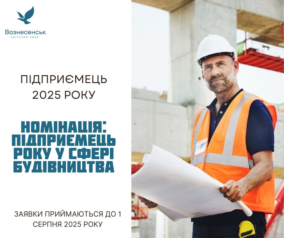 ✅ Саме час відзначити кращого підприємця 2025 року у номінації «Підприємець у сфері будівництва»!