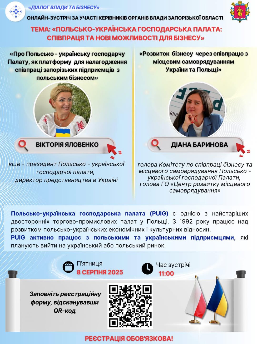 Мета зустрічі – ознайомити запорізьких підприємців з практичними інструментами для налагодження співпраці з польським бізнесом, які доступні за сприяння господарчої палати.
