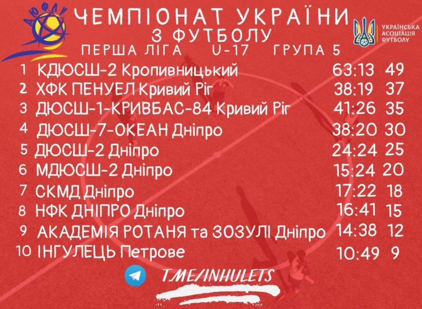 Підсумкові турнірні таблиці