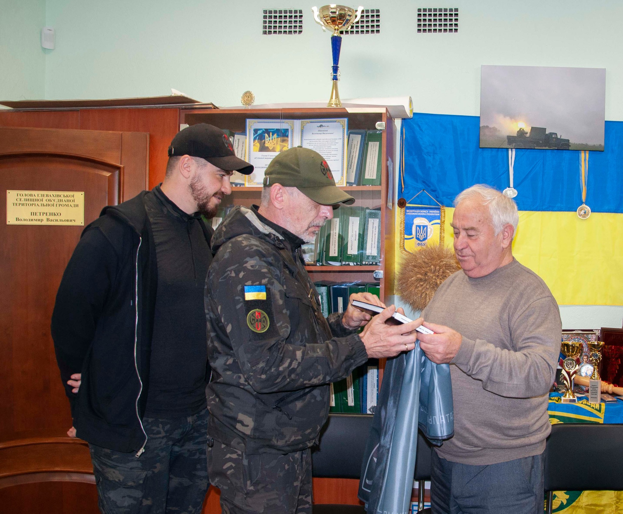Сьогоднішня зустріч у Глевахівській селищній раді стала особливою подією. Делегація з батальйону безпілотних систем «Мара», що входить до складу 66-ї окремої механізованої бригади імені князя Мстислава Хороброго, висловила глибоку вдячність громаді за надану підтримку. Військовослужбовці підкреслили, наскільки своєчасною та вагомою є ця допомога у нелегкій боротьбі за незалежність та територіальну цілісність України. На знак вдячності, захисники передали голові громади Володимиру Петренку цінний символ – прапор батальйону, а також пам’ятний подарунок: фотоальбом, що ілюструє життя та бойовий шлях підрозділу.