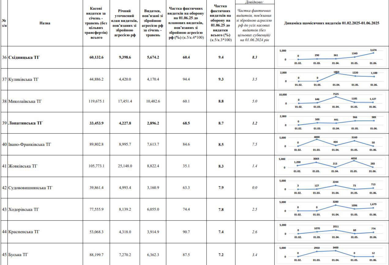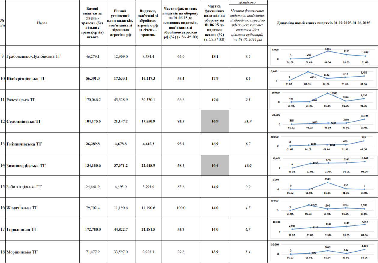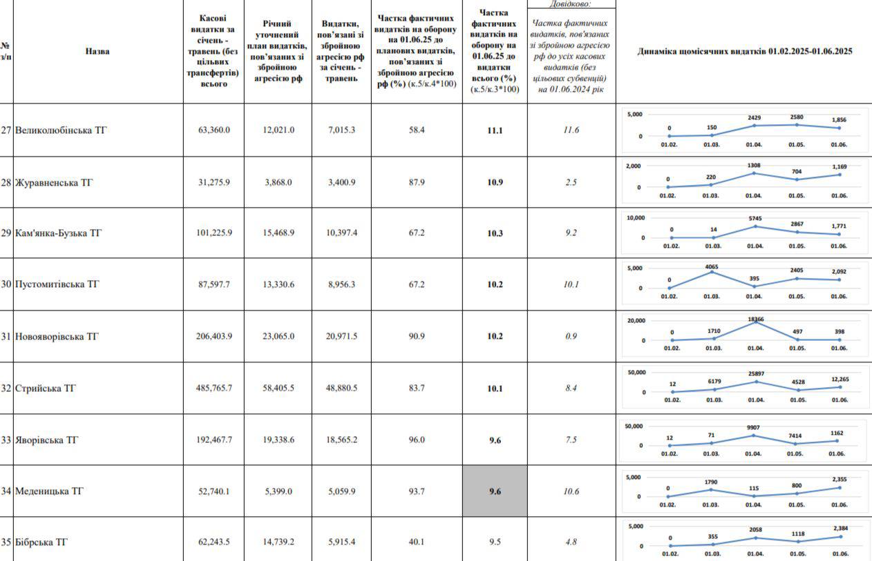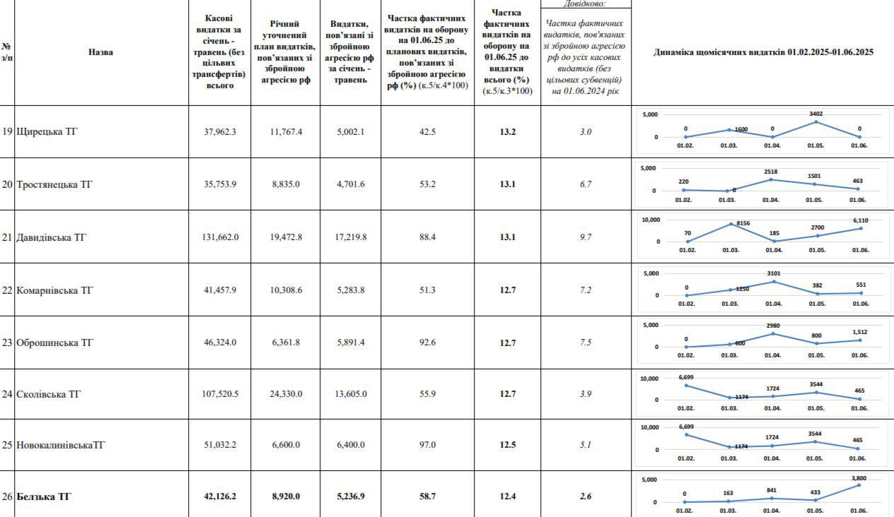 Повну картину оборонних видатків кожної громади можна побачити у скрінах, які додаються до поста. Аналіз цих даних дозволяє оцінити внесок кожної громади та визначити напрямки для покращення.