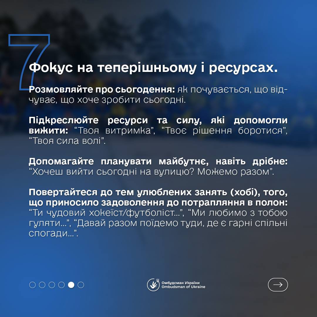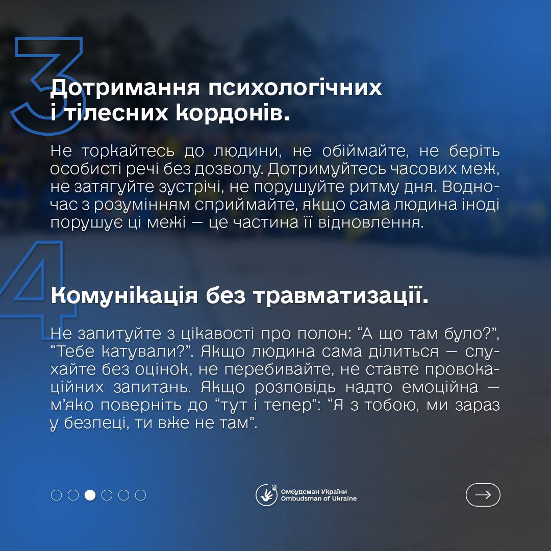 Омбудсман України Дмитро Лубінець ділиться важливими та практичними порадами, які допоможуть вам у цьому. Ці поради, представлені в інфографіці, є простими, але надзвичайно цінними. Підтримка після повернення має бути комплексною та враховувати всі аспекти життя людини.