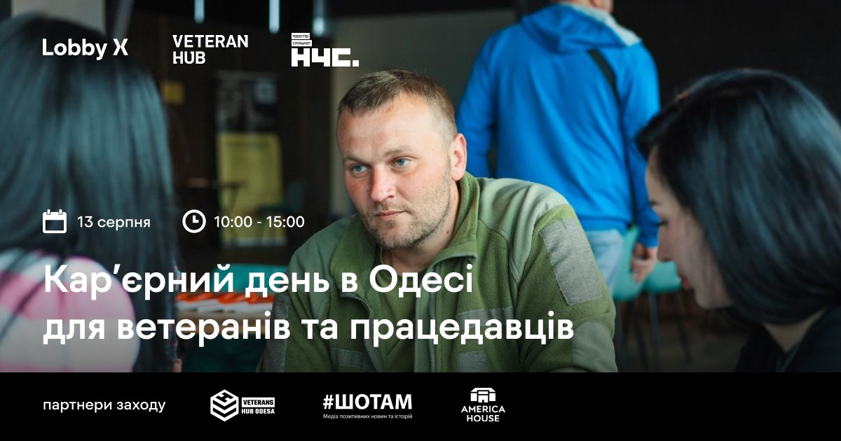 Підтримуємо ініціативу Lobby X, Veteran Hub та простір спільнот «На часі» організовують кар’єрний день в Одесі, який допоможе ветеранам/кам знайти нові професійні можливості, а працедавцям — залучити нові таланти.