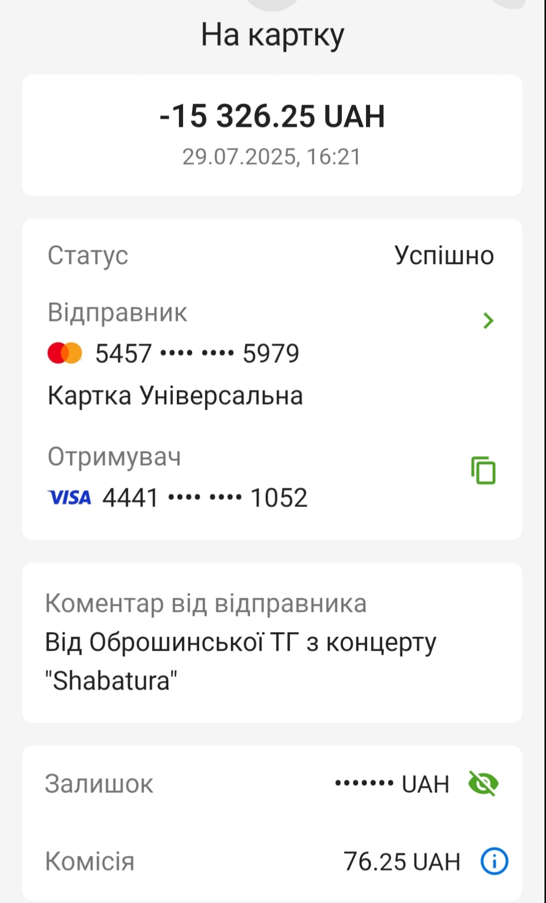 «Shabatura» зібрали 15 250 грн на дрон для ЗСУ
