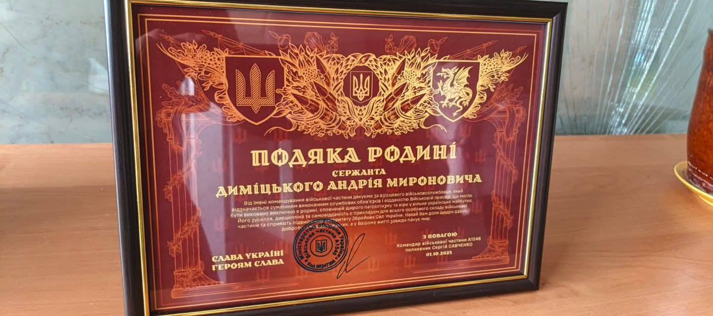 Під час сесійного засідання міський голова Микола Романишин вшанував пам’ять полеглого захисника України, сержанта Андрія Мироновича Диміцького. Рідним героя була вручена Подяка від командування військової частини, яка відзначає його віддану службу, мужність та самовідданість у боротьбі за незалежність нашої держави. Ми низько схиляємо голови перед подвигом наших воїнів, які щодня боронять рідну землю від ворога. Особливу вдячність висловлюємо родинам загиблих героїв за їхню незламну підтримку, терпіння та любов. Ваша сила духу є запорукою незламності всієї України 💙💛. Кожен полеглий герой, як Андрій Диміцький, назавжди залишається в наших серцях та увічнений у пам’яті наступних поколінь. Вручення подяк близьким військовослужбовців є важливим елементом вшанування їхнього внеску у захист суверенітету та територіальної цілісності України. Місцева влада прагне підтримувати родини загиблих, надаючи їм необхідну допомогу та увагу. Це не просто формальність, а щира шана та визнання подвигу тих, хто поклав своє життя заради миру та безпеки всіх нас. Пам’ять про героїв живе у наших серцях, а їхня боротьба надихає нас на подальшу стійкість та єдність. Ми віримо, що завдяки мужності наших захисників, Україна здобуде перемогу і мир запанує на нашій землі. Вшановуючи пам’ять таких героїв, як Андрій Диміцький, ми підтверджуємо свою відданість ідеям свободи та незалежності. Їхній приклад надихає наступні покоління українців берегти свою державу та боротися за її майбутнє. Міська рада продовжуватиме роботу з підтримки родин полеглих воїнів та вшанування їхнього героїчного подвигу. Це наш обов’язок перед тими, хто віддав найцінніше заради нас.