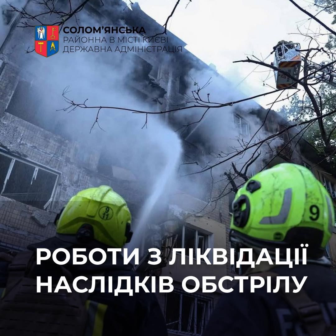 Завтра роботи з ліквідації наслідків обстрілу у Солом’янському районі будуть продовжені з метою якнайшвидшого відновлення нормального функціонування інфраструктури та життя мешканців. Мешканці, чиї оселі зазнали пошкоджень, можуть особисто звернутися за додатковою допомогою до Управління соціальної та ветеранської політики. Приймальня розташована за адресою: проспект Повітряних Сил, 40, кабінети 104 та 105. Графік роботи: з 8:00 до 17:00.