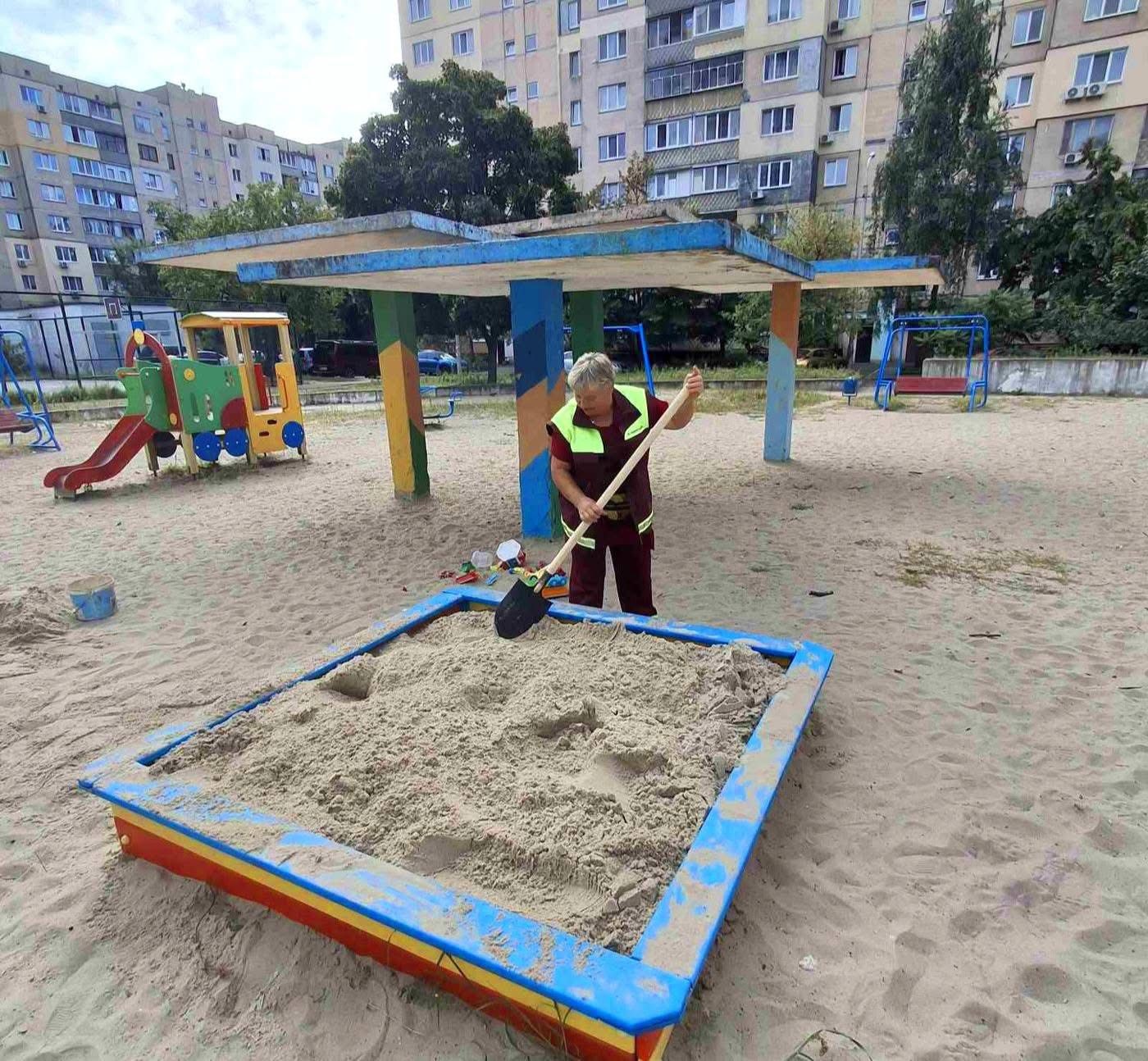 Особлива увага приділена естетичному вигляду та безпеці ігрових елементів. Всі конструкції були оновлені свіжою, яскравою фарбою, що надало їм привабливого вигляду та продовжило термін їх служби. Це не лише додає барв, але й робить майданчики більш помітними та безпечними для дітей. Окрім цього, для забезпечення чистоти та гігієни, до всіх пісочниць було завезено новий, чистий пісок. Це важливий крок для здоров’я малюків, адже пісок є основою для багатьох дитячих ігор.