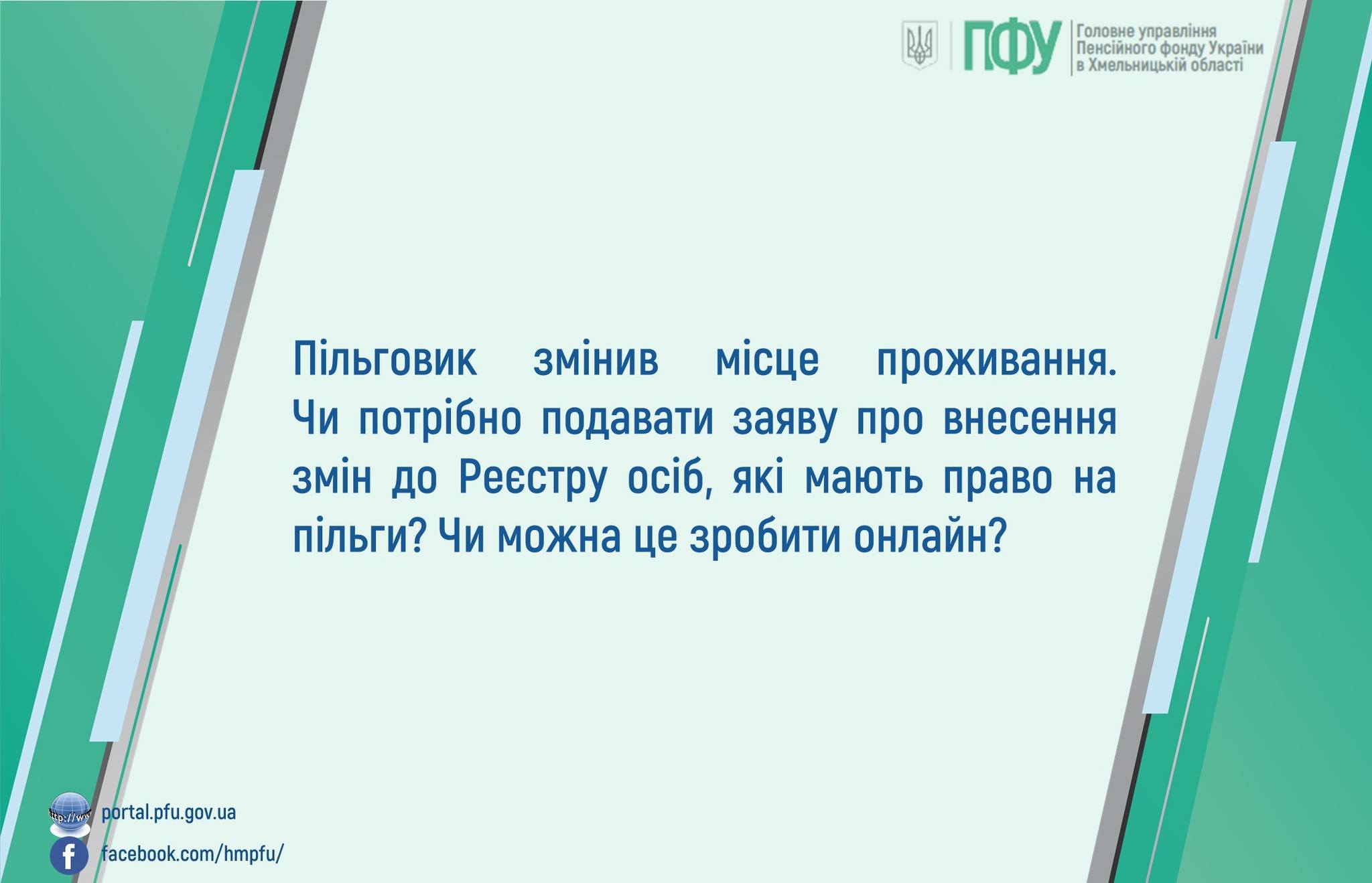 Пільговик змінив місце проживання. Чи потрібно подавати заяву про внесення змін до Реєстру осіб, які мають право на пільги? Чи можна це зробити онлайн.