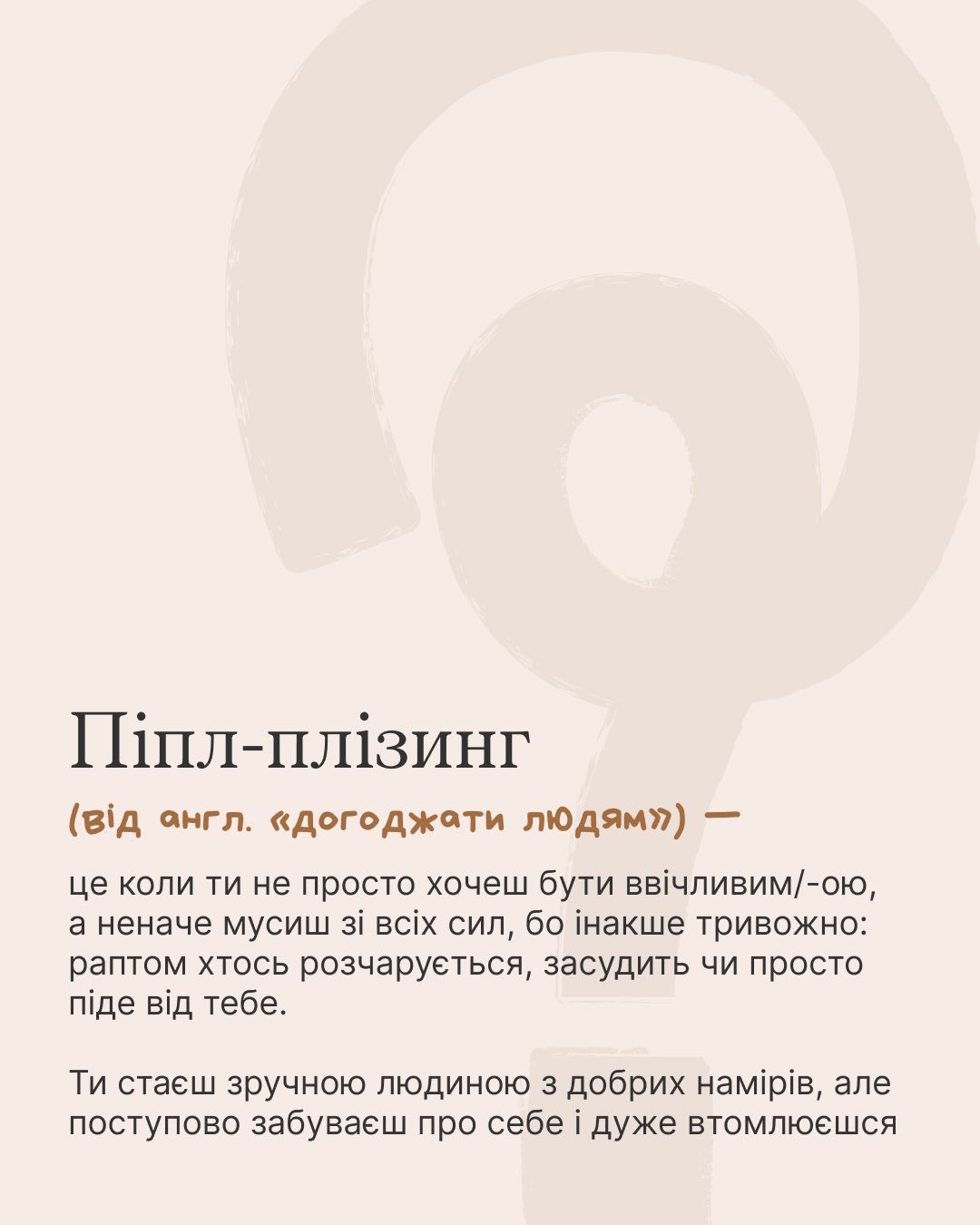 Чи знайоме вам відчуття, коли бажання сподобатись іншим стає настільки сильним, що ви забуваєте про власні потреби та кордони? Піпл-плізинг – це саме про це. Це коли схвалення інших людей стає важливішим за ваші власні бажання, а невисловлене «ні» здається зрадою для всіх навколо.