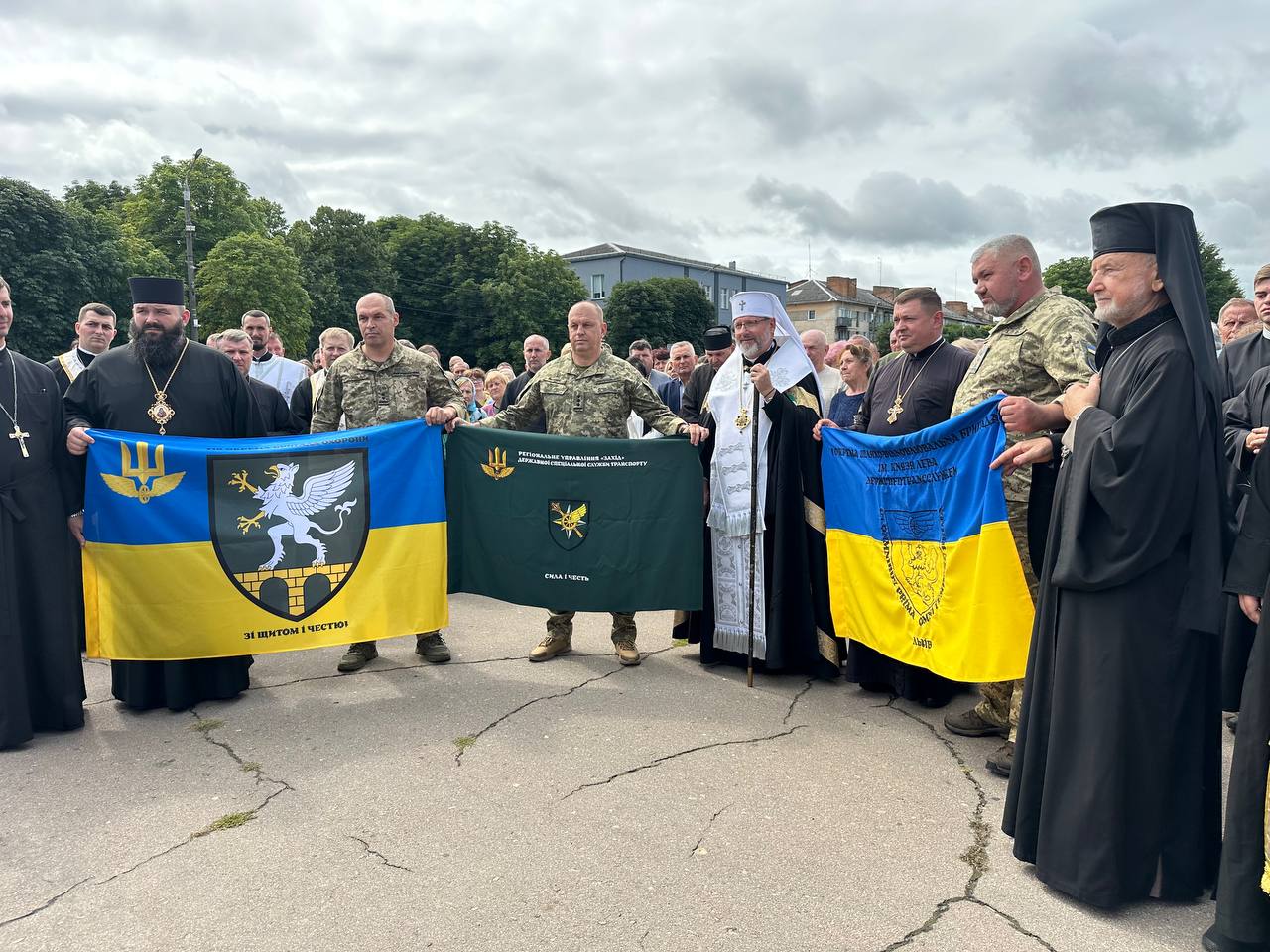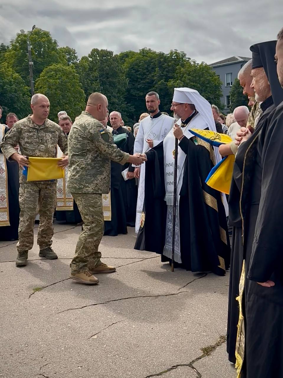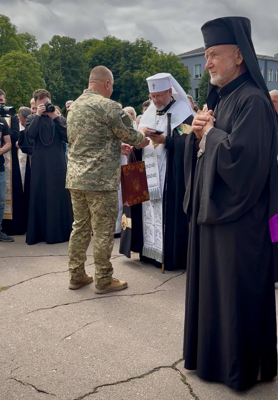 Після завершення панахиди та освячення Алеї Героїв полковник Олег Мазурок, начальник Регіонального управління «Захід», передав Блаженнішому Святославу Шевчуку стяг, вишитий вручну спеціально до цієї події – як символ живої пам’яті й нескореності, та подарував книгу військовослужбовця роти ударних безпілотних авіаційних комплексів 710-ї окремої бригади охорони державної спеціальної служби транспорту Володимира Гаврилюка “Історія війни”.