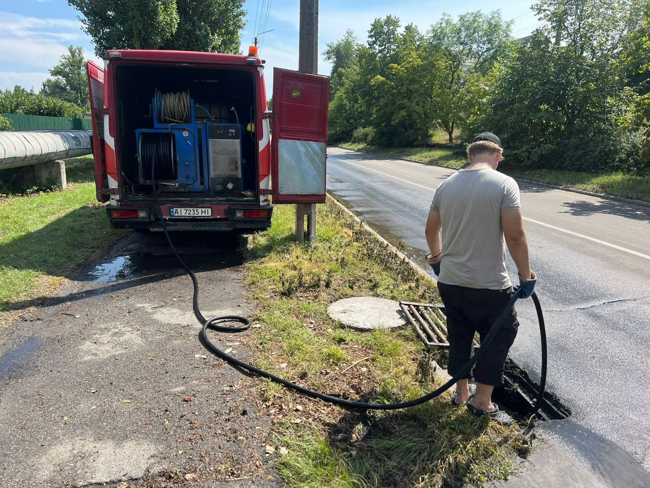 На локаціях, де зафіксовано засмічення каналізацій унаслідок зливи, оперативно проведені роботи з їх прочистки.