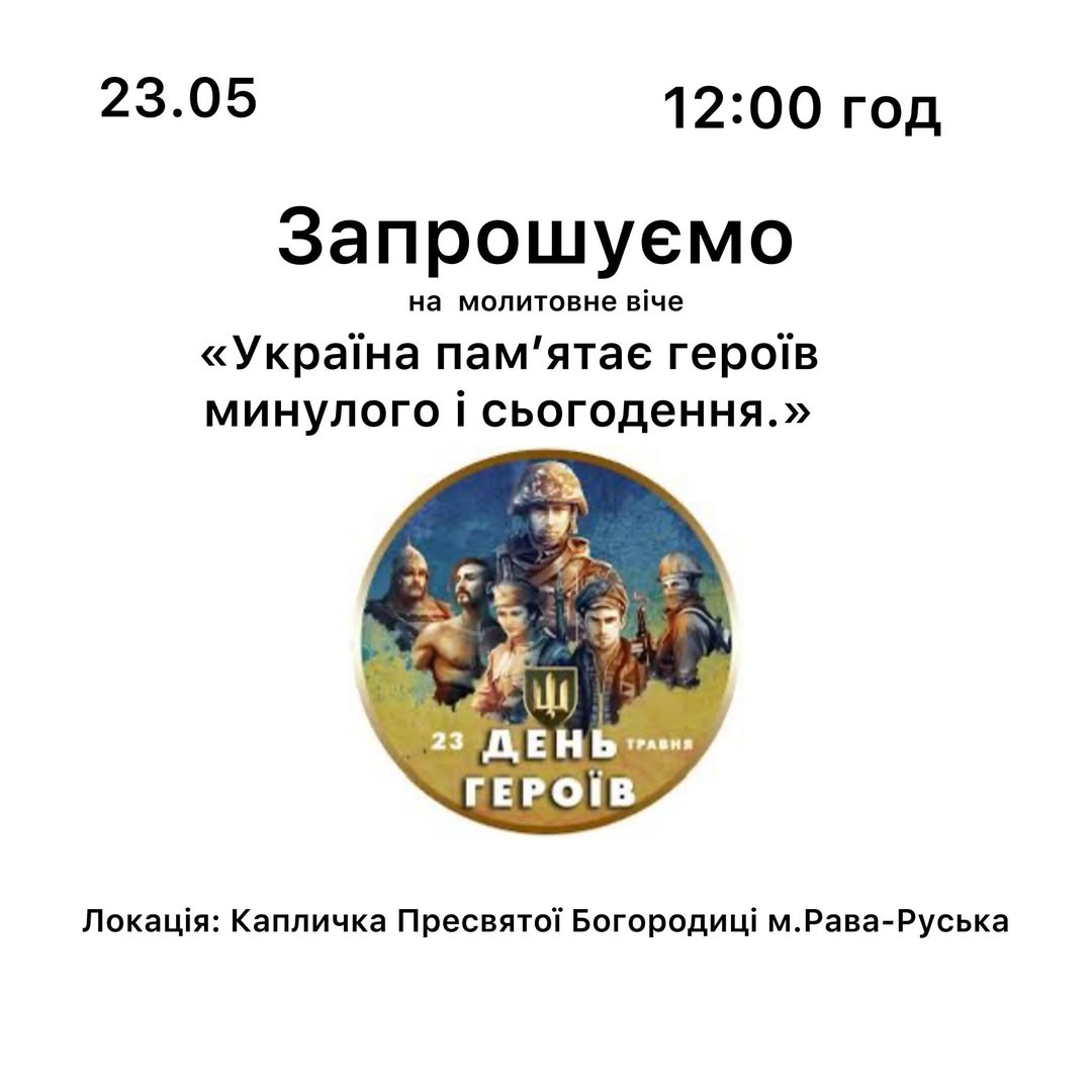 Рава-Руська міська рада запрошує мешканців та гостей міста на молитовне віче під назвою «Україна пам’ятає героїв минулого і сьогодення», присвячене відзначенню Дня Героїв. Це важлива подія для вшанування пам’яті тих, хто віддав своє життя за волю та незалежність України.