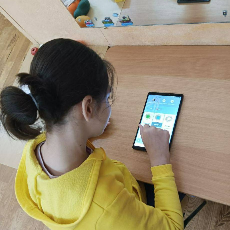Вчитель-дефектолог відділення соціальної реабілітації (абілітації)) Центру Олена Михайлова, яка активно використовує на заняттях цей цифровий інструмент, ознайомила спеціалістів Центру з можливостями застосунку та результатами його впровадження.