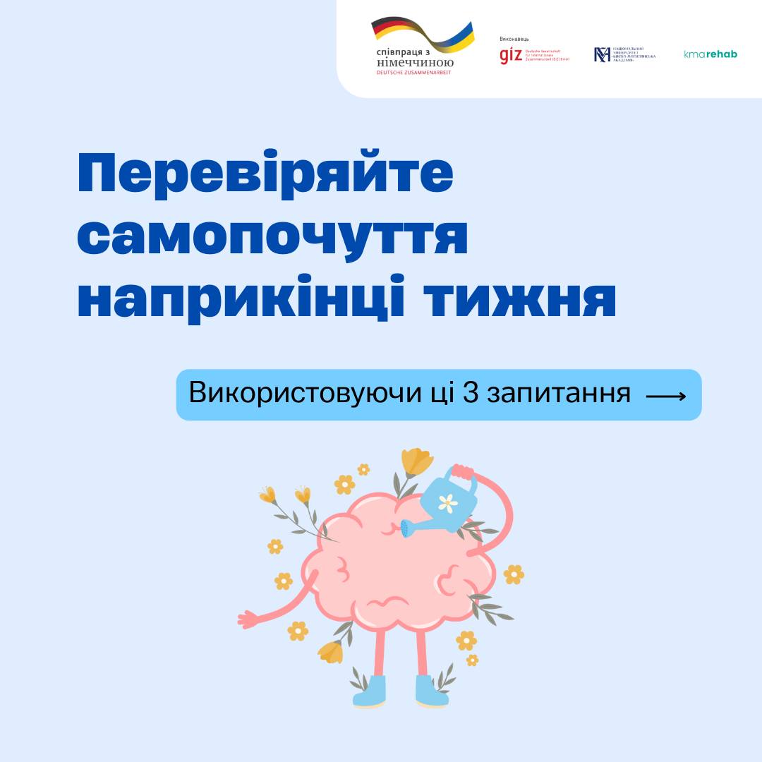 Регулярно відстежуйте свій стан наприкінці тижня за допомогою трьох простих питань. Це допоможе вам краще зрозуміти себе та свої емоції, сприяючи загальному психічному благополуччю. У ці складні часи важливо приділяти увагу своєму ментальному здоров’ю, адже воно є фундаментом нашої стійкості. Комплексна психологічна підтримка є ключовою для подолання викликів, з якими ми стикаємося щодня.