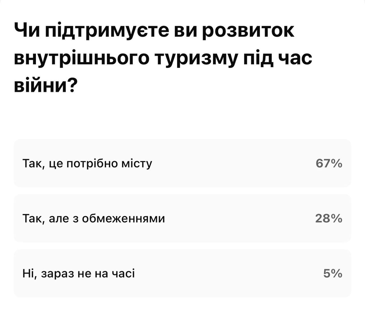Результати опитування «Чи підтримуєте ви розвиток внутрішнього туризму під час війни?» в застосунку MISTO: