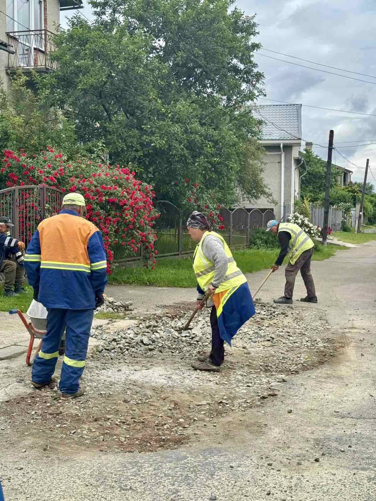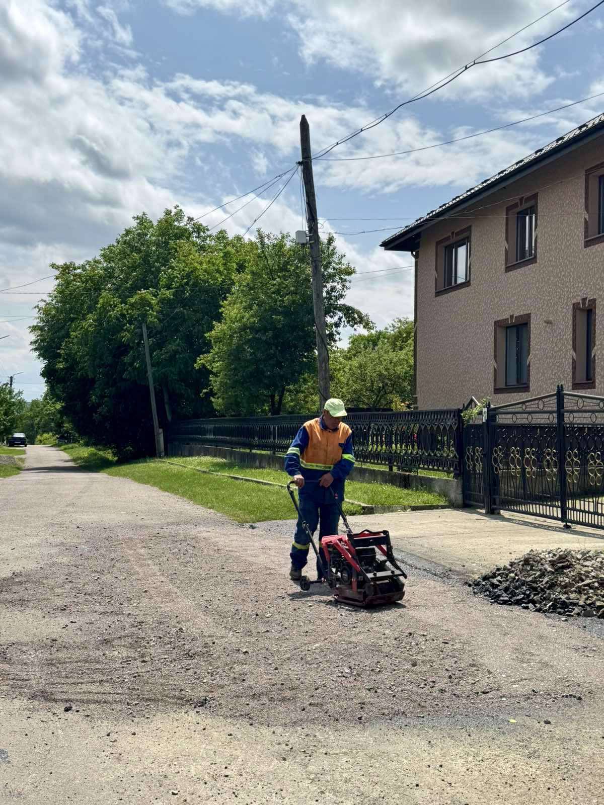 - ямковий ремонт асфальтобетонного покриття струменевим методом обладнанням «MADPATCHER» на вул. Колеси, Павлика, Промисловій та із застосуванням гудронатора на вул. Сонячній.