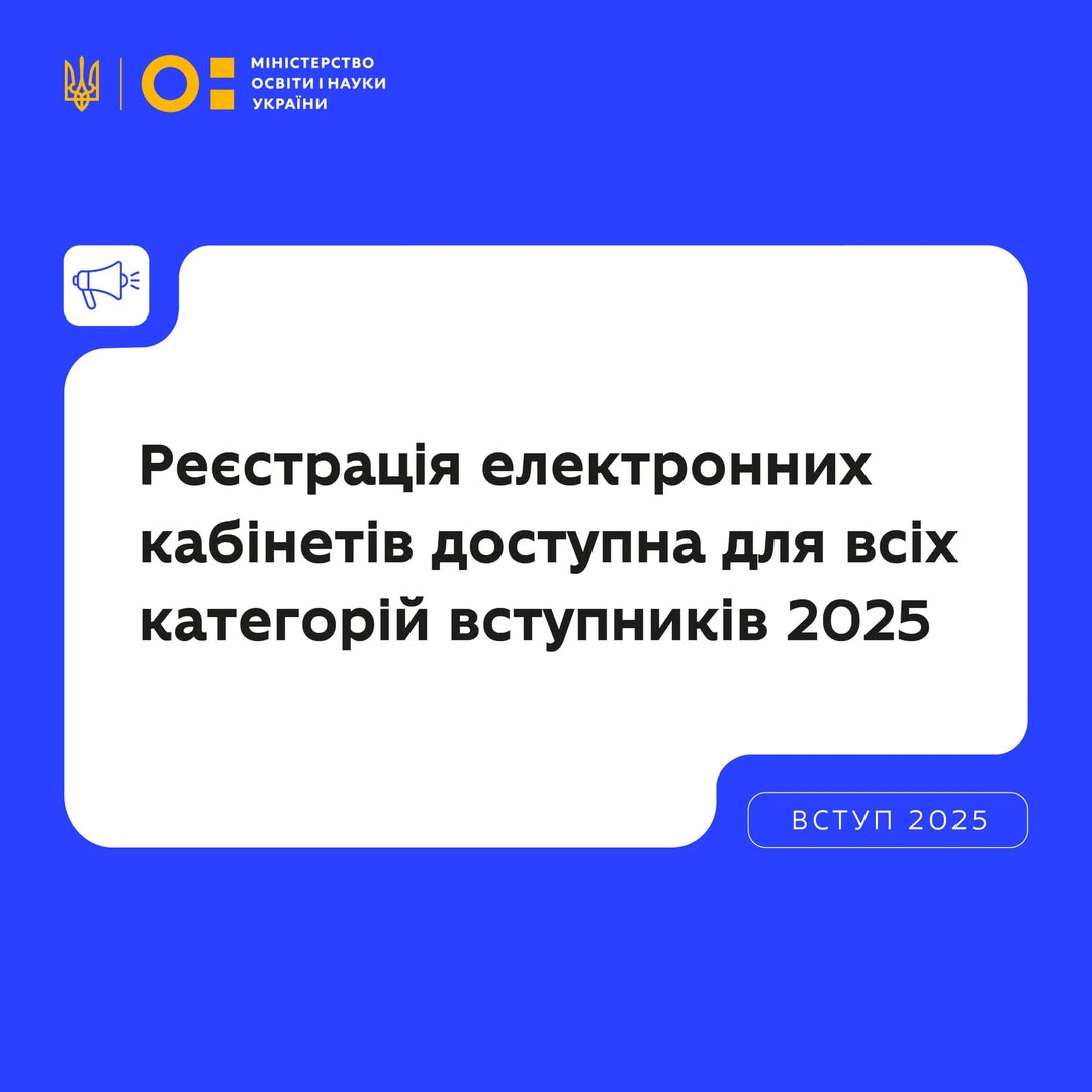 ⚡️ Реєстрація електронних кабінетів — доступна для всіх категорій вступників 2025.