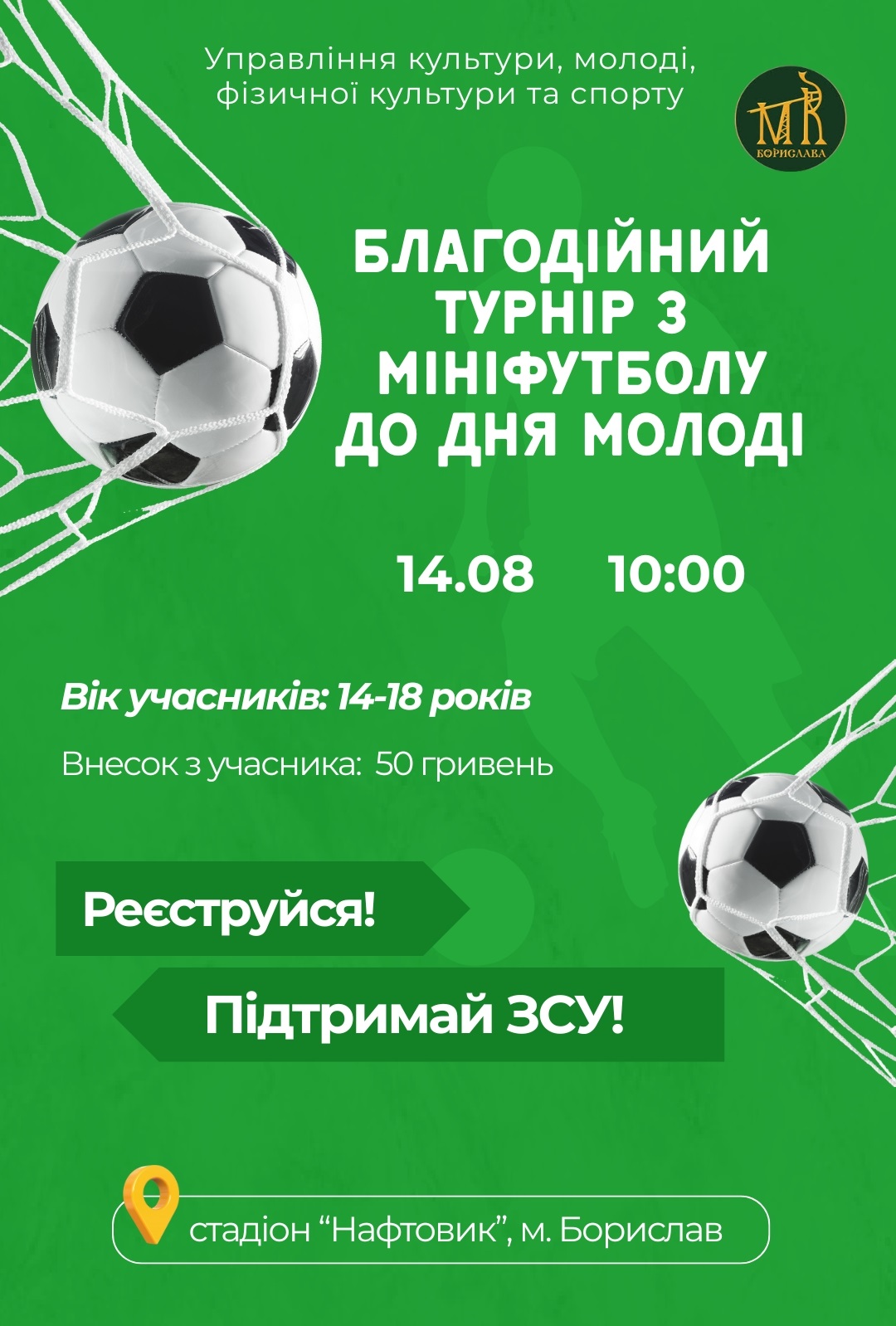 ⚡️ Реєстрація на благодійні спортивні змагання до Дня молоді в Бориславі