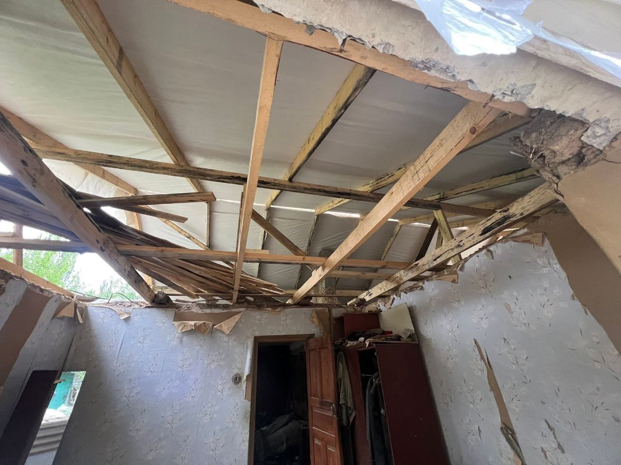 У ніч на 28 травня внаслідок ворожого обстрілу по вулиці Заводській було повністю зруйновано дах житлового будинку.