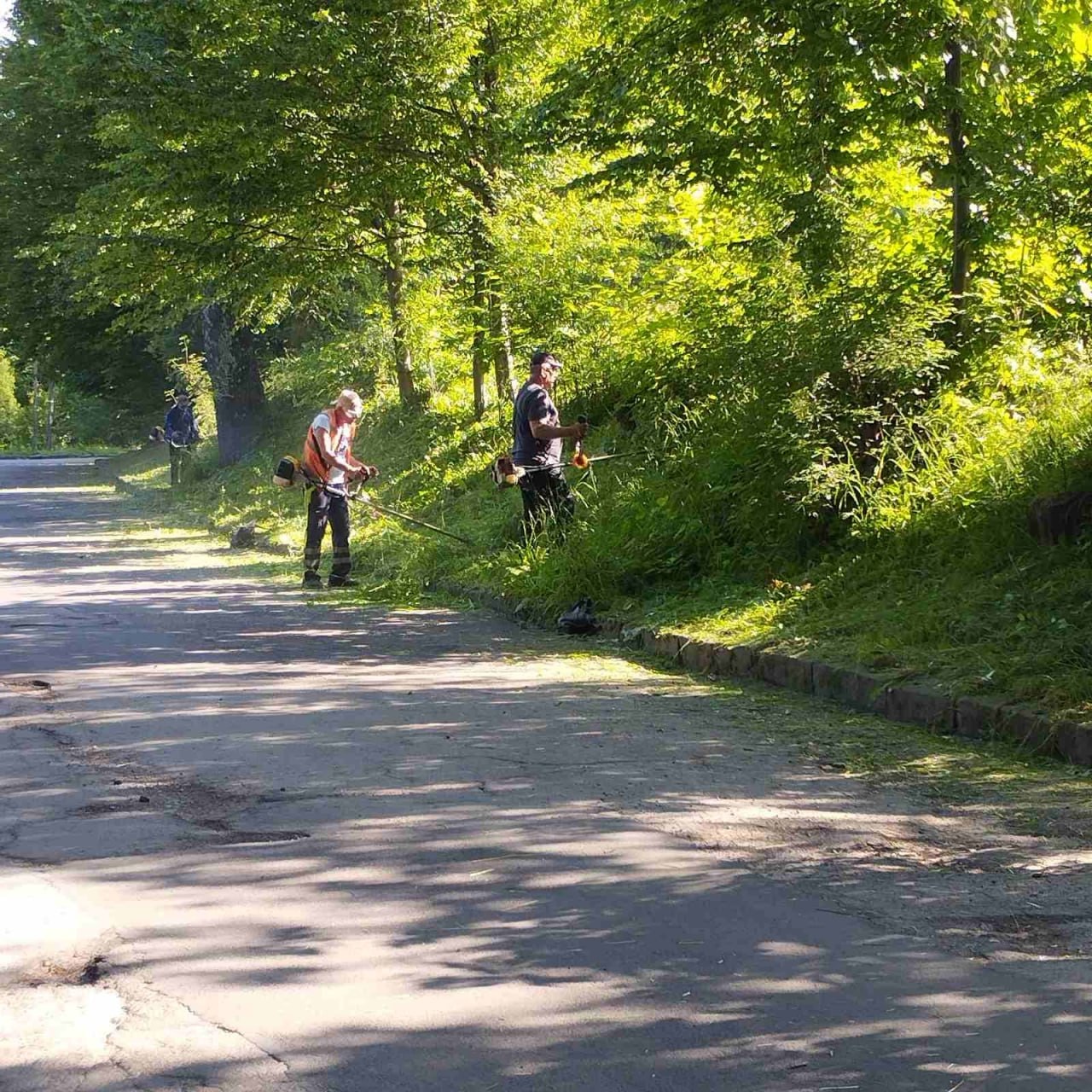 Робота КП «Парк курортний»: механізоване та ручне косіння газонів на вулицях Франка, Івасюка, Стебницькій, Шевченка, а також на об`їзній, ремонт парапетних лавок на площі Незалежності, розчищення дорожнього знаку «В`їзд заборонено» на перехресті вулиць Роксолани та Суховоля.