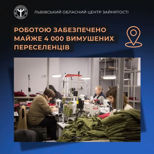 ✅📊Майже 4 000 вимушених переселенців знайшли роботу завдяки Львівській обласній службі зайнятості.