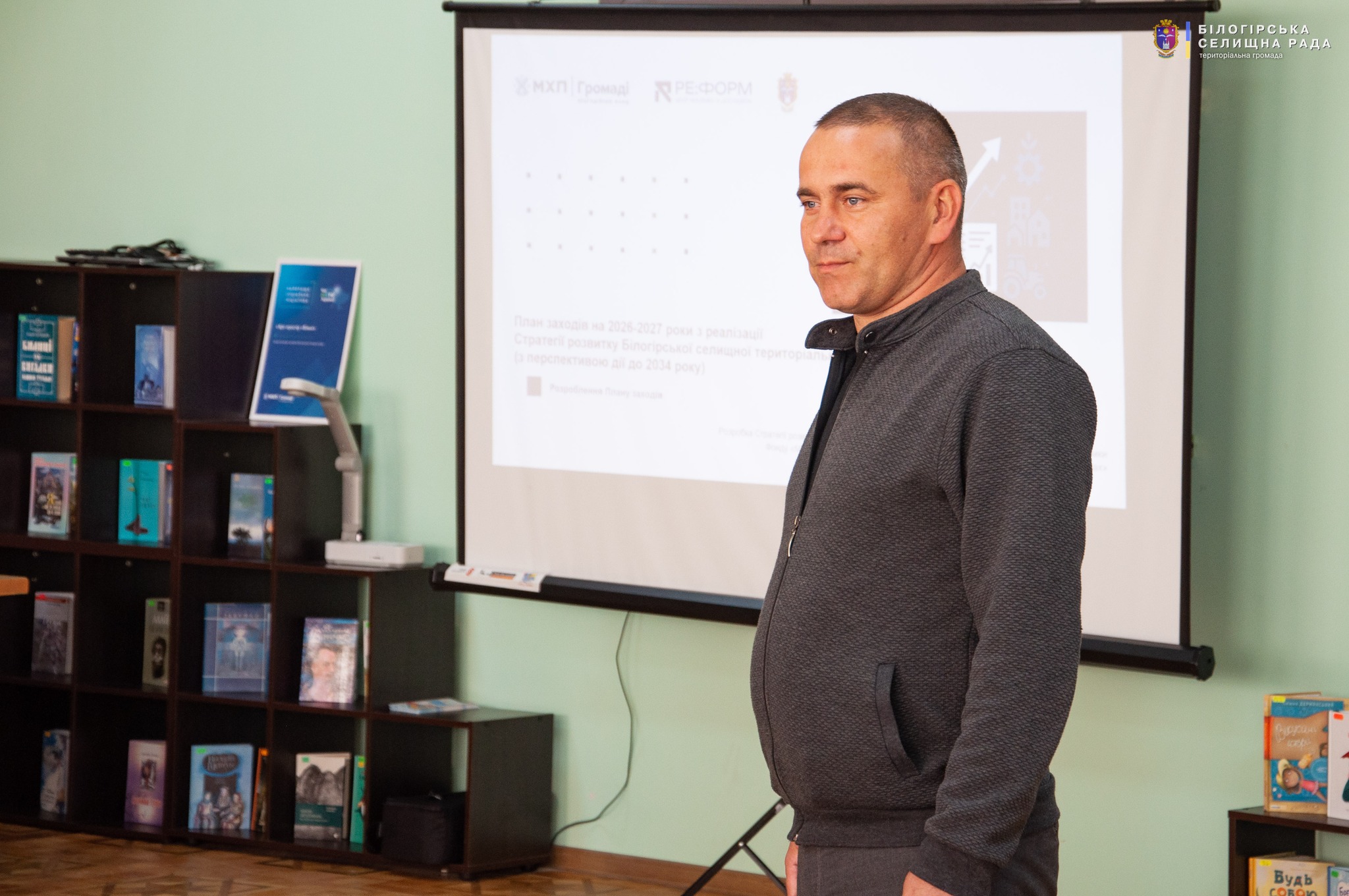 18 вересня 2025 року робоча група зібралася для обговорення та розробки Стратегії розвитку Білогірської селищної територіальної громади. Цей стратегічний документ охоплює період до 2027 року з перспективою продовження до 2034 року. Андрій Залужний, експерт громадської організації «Ре:Форм», представив інноваційні проєктні ідеї для Плану заходів на 2026-2027 роки. Ці пропозиції були ретельно зібрані та систематизовані фахівцями відділу економічного розвитку, інфраструктури та інвестицій Білогірської селищної ради, що свідчить про глибокий підхід до планування.