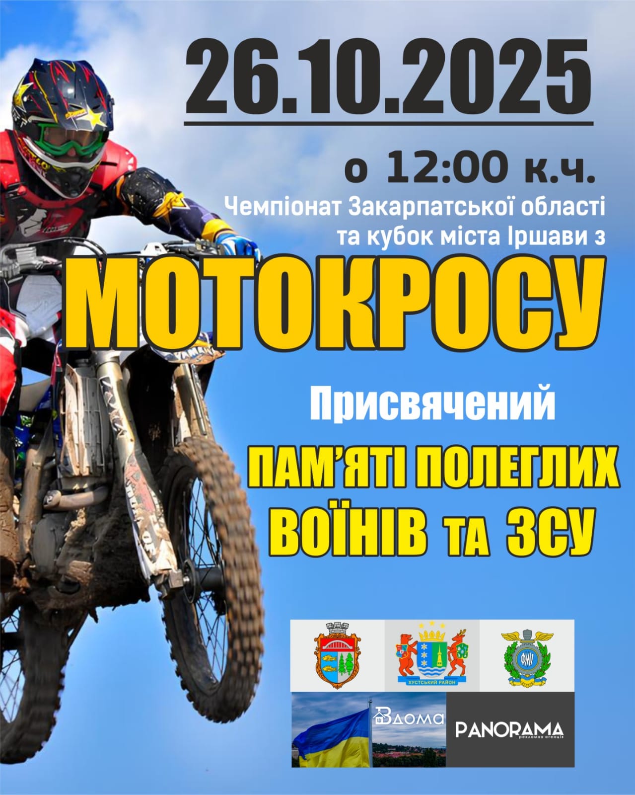 Ми раді повідомити, що 26 жовтня в місті Іршава відбудеться знакове спортивне дійство – Чемпіонат Закарпатської області та Кубок міста Іршава з мотокросу! Це подія, яку не можна пропустити шанувальникам швидкості, адреналіну та майстерності управління мотоциклом.